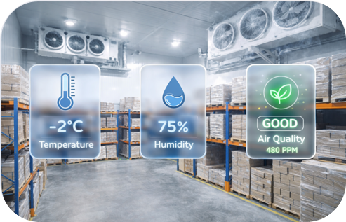 MICROCIL provides real-time monitoring of temperature, humidity, and potential hazards such as fire, gas leaks, or water intrusion, ensuring your products are stored safely, minimizing spoilage, and protecting people to save lives