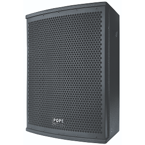 The POPE Professional® HD-12, HD-15, HD-215 loudspeakers and HD-18B sub-woofer are designed for distributed sound reinforcement and small venues. The system is based on low frequency drivers with high frequency compression driver coupled to horn. The enclosure is trapezoidal shape to reduce cabinet reflection causing colorations. The enclosure made of 15 mm and 18 mm engineered wood glued together in conjunction with dado joints to assure the highest quality of robustness.