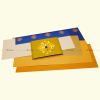 Pearl finish with the names on the pouch gold foiled or copper foiled, text on the pouch screen printed with a transparent UV print. Inserts are digitally printed. The pouch comes in a ffitted plastic covet with a pearl sticker label.