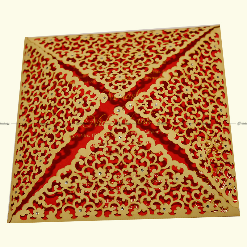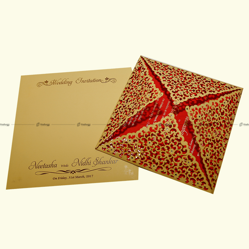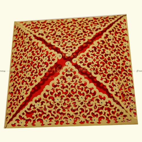Pearl finish with the names on the pouch gold foiled or copper foiled, text on the pouch screen printed with a transparent UV print. Inserts are digitally printed. The pouch comes in a ffitted plastic covet with a pearl sticker label.