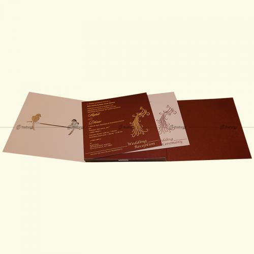 Pearl finish with the names on the pouch gold foiled or copper foiled, text on the pouch screen printed with a transparent UV print. Inserts are digitally printed. The pouch comes in a ffitted plastic covet with a pearl sticker label.